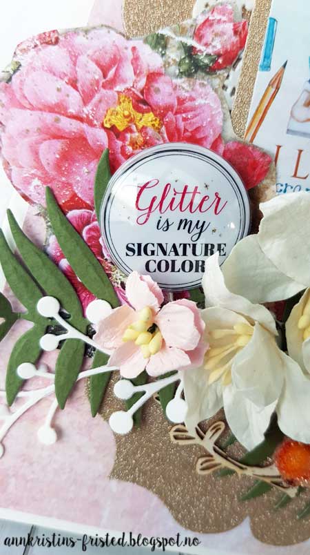 Til denne utfordringen passet det utmerket å bruke glitterkartong fra Best Creation. Den er stanset ut i den flotte diesen fra StudioLight(so spring serien). Mønsterarket i bunn er også fra StudioLight. Kortet er laget til ei scrappevenninne, og da var det ingen tvil at det passet med disse motivene fra ByDigitalPaper. Jeg har pyntet med blomster fra IamRoses.